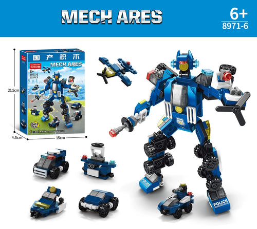 6 IN 1 Police Mech Ares 8971-6 Block Puzzle Model Toys 135pcs - Kidz Brickify